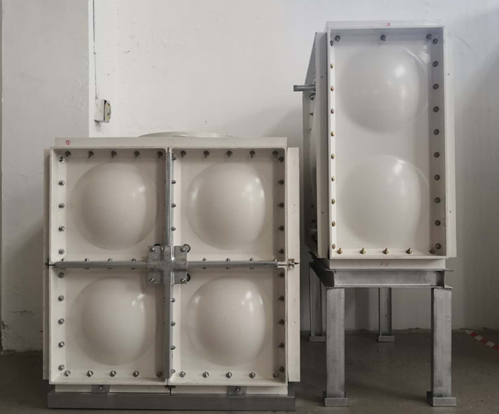 1、槽鋼:一般組合式玻璃鋼水箱槽鋼底座的橫、縱向槽鋼距離1m,其槽鋼架的全體強度及承受力較差,而我們水箱的橫、縱向槽鋼的距離是0.5m,銜接選用悉數(shù)滿焊,能夠根底安定,強度較高。